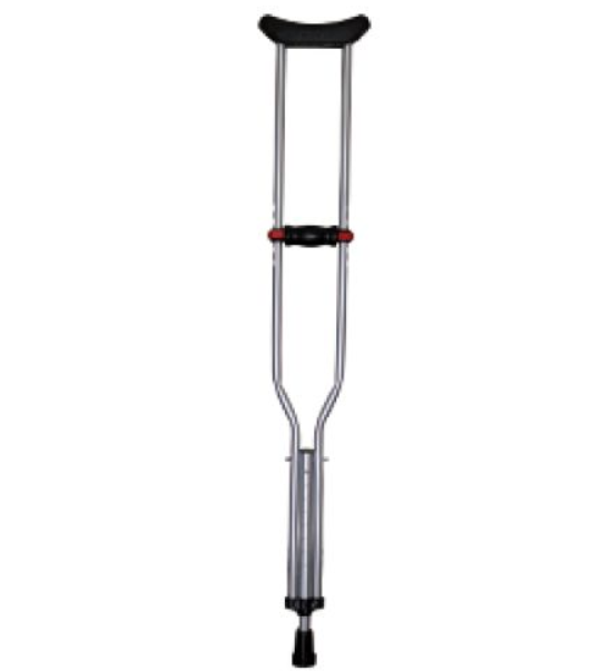 Confeccionado com hastes leves em alumínio, apoio axilar em poliuretano com reforço interno de TPE, regulagem de altura com pino rápido e ponteiras resistentes e flexíveis em poliuretano.